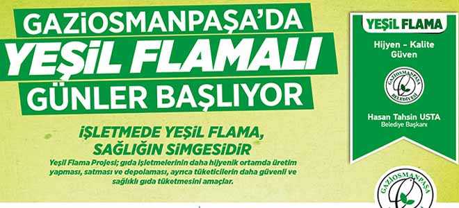 İlçe sınırları içinde gıda maddeleri imalatı ya da satışı yapan, çalışma ortamlarının hijyenik ve teknik şartlarının üst seviyede olmasına, insan sağlığına önem verip nitelikli ve temiz olmasına dikkat eden işletmelere Gaziosmanpaşa Belediyesi’nce ‘Yeşil Flama’ adı altında bir teşekkür belgesi verilecek. Ruhsat ya da çalışma izin belgesi yerine geçmeyen ve herhangi bir cezalandırma amacı taşımayan uygulamayla insan sağlığına önem veren işletmelerin öne çıkması hedefleniyor.