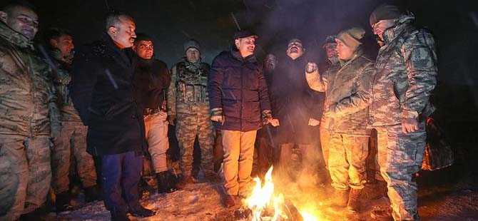 “Jandarmamız, komandolarımız, polis özel harekatımız, güvenlik korucularımız, hep birlikte 2019’a iyi dileklerle, güzel temennilerle girdik. İnşallah 2019 hepimizin dilediği ve dua ettiği gibi olur. Burada yaklaşık 3,5 metre kar var. Çıkışımız 3 saat aldı. Bulunduğum yerde kahramanlarımız karı oyarak 5-6 metrekarelik oturma alanı yapmışlar. Biraz önce onlarla birlikteydik. Şunu milletimize söylemek isterim. Gece gündüz bu ülkenin huzuru, refahı, bölünmez bütünlüğü, güvenliği, ülkemin her noktasında, sınırlarında, ülkemin şehirlerinde, köylerinde, kasabalarında, insanların huzurlu şekilde yarına bakabilmesi için görev yapan güvenlik kuvvetlerimiz var. Öncelikle onların yeni yılını tebrik ediyorum. Allah ayaklarını taştan esirgesin. Şu anda belki yerin altında maden kazarak çocuklarının nafakasını temin etmeye çalışanlar var. Onlara da buradan selamlarımı gönderiyorum.”