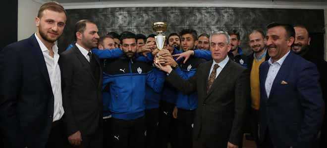 Törende Başkan Aydın, kulüp yöneticilerini ve oyuncuları tebrik ederek “Zorlu bir grupta zorlu mücadeleler oldu. Neticede gerçekten takdire şayan bir başarı elde edildi. Allah başarınızı daim etsin. Birlik beraberlik içerisinde, düzgün yöneticiler, düzgün yönetim ve inanmışlık olunca başarı geliyor” dedi.