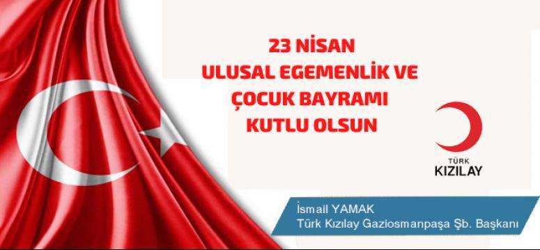 TÜRK KIZILAY GAZİOSMANPAŞA ŞUBE BAŞKANI İSMAİL YAMAK, 23 NİSAN ULUSAL EGEMENLİK VE ÇOCUK BAYRAMI KUTLAMA MESAJI...