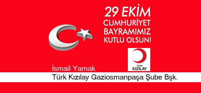 TÜRK KIZILAY GAZİOSMANPAŞA ŞUBE BAŞKANI İSMAİL YAMAK, 29 EKİM CUMHURİYET BAYRAMI KUTLAMA MESAJI...