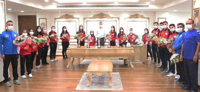 Sporcularla sohbet edip, onlara öğütler veren Başkan Usta, “Bu başarıda emeği geçenlere, hocalarımıza, yöneticilerimize, sizlere her zaman destek olan ailelerinize de teşekkür ediyorum. Sizin aileleriniz demek ki size destek oluyor, başarı yolunda yanınızda oluyor. Bu önemli bir güçtür. Tabi ki size emek veren hocalarınızın da katkıları sizler tarafından malum. Başarı heyecanı hayat boyu insana değerlendirildiği takdirde hep avantaj sağlar. Bu başarılar başka turnuvalara, başka hedeflere koşma yolunda da bir referans. Bu başarılar hep takdirle yad edilecek bir avantaj oluyor her birinize. Onun için hepinizi bu emeklerinizden dolayı tebrik ediyorum” dedi.
