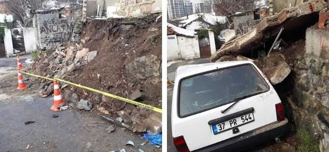 Çökme nedeniyle bir araç istinat duvarının altında kaldı. Taş ve toprak yığınları altında kalan aracı Gaziosmanpaşa Belediye ekipleri çıkartarak, çöken alanı emniyet şeridine aldı.