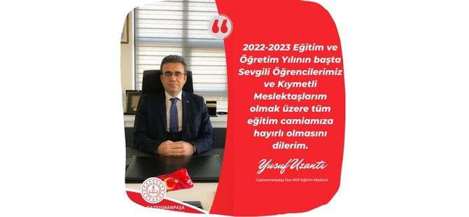 Gaziosmanpaşa İlçe Milli Eğitim Müdürü Yusuf Uzantı, yayımladığı mesjada; "2022 - 2023 Eğitim ve Öğretim Yılının başta öğrencilerimiz ve kıymetli meslektaşlarım olmak üzere tüm eğitim camiamımıza hayırlı olmasını dilerim." Dedi.